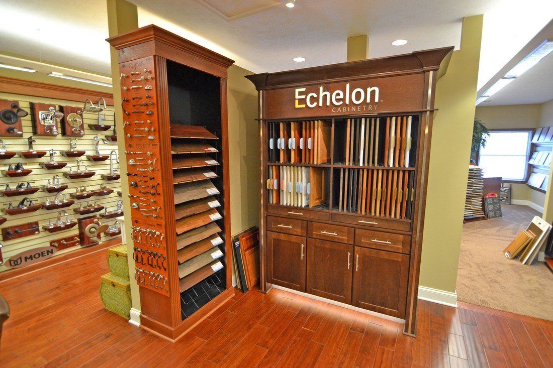 - Array of cabinet styles, species and finishes.